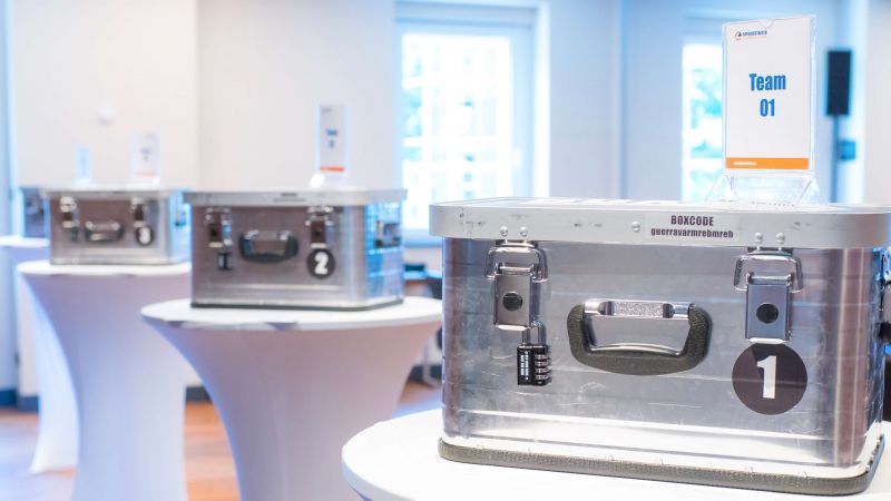 Ein echter Test der Teamarbeit. Im Laufe der Aktivität lernen die Teams, effizient und effektiv in begrenztem Zeitrahmen zu arbeiten. Beat the Box ist eine wirklich kollaborative Teamübung, denn in der Endphase des Spiels müssen die Teams zusammenarbeiten und ihre Hinweise kombinieren, um den richtigen Code zu finden.